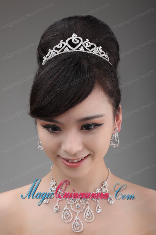 Elegant Rhinestone Wedding Jewelry Set Including Drop Earrings Crown And Necklace
