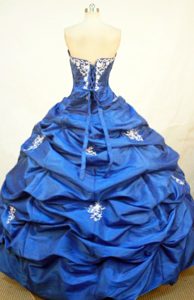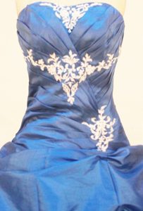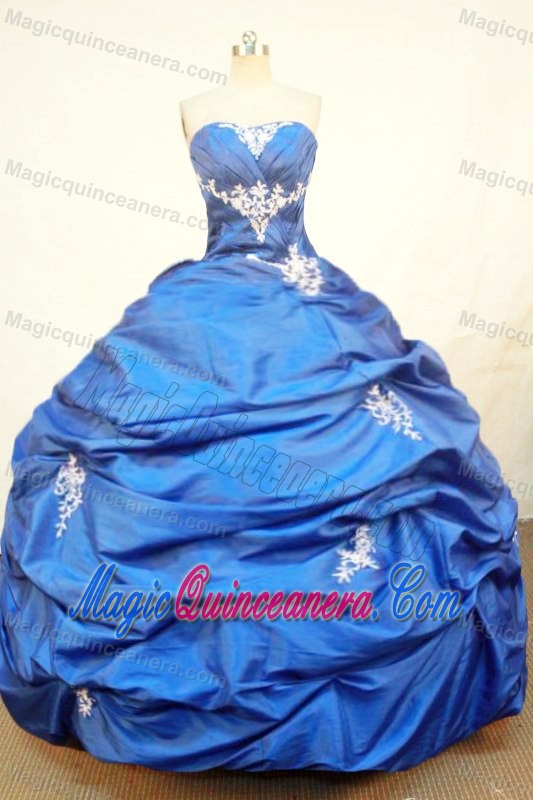 Elegant Ruching and Appliques Strapless Quincenera Dresses in Blue