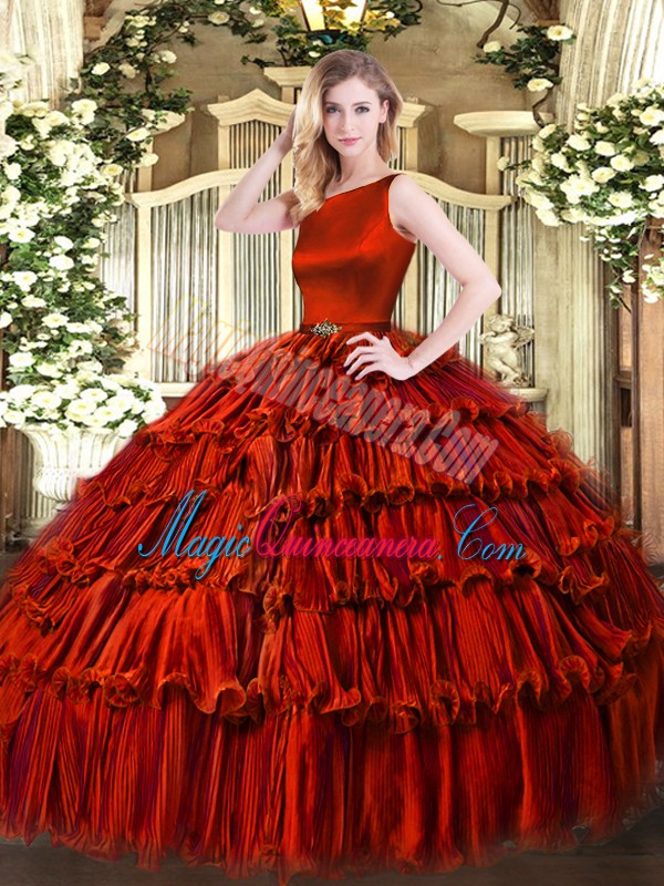 Elegant Ruffled Layers 15 Quinceanera Dress Wine Red Clasp Handle Sleeveless Floor Length