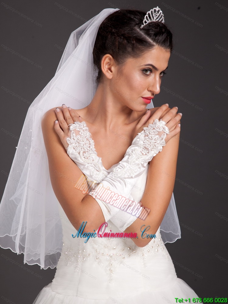 Elegant Satin Fingerless Elbow Length Appliques Bridal Gloves