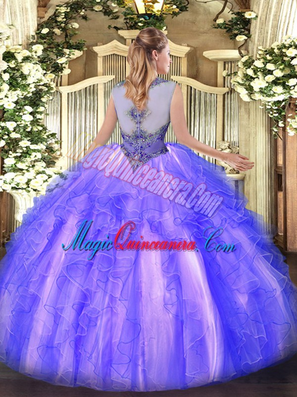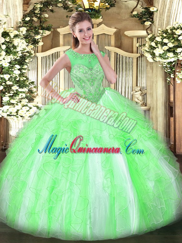 Elegant Scoop Lace Up Beading and Ruffles Quinceanera Dress Sleeveless