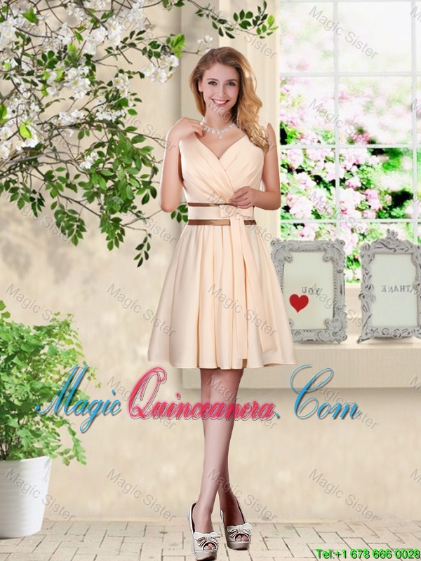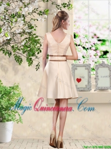 brand new custom made dama dresses online, Elegant Short V Neck and Bowknot Bridesmaid Dresses in Champagne