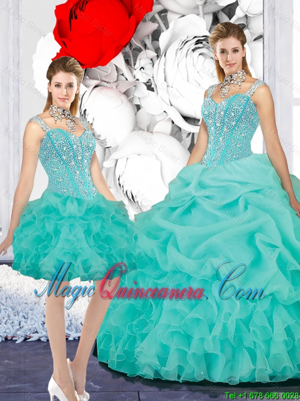 2016 websites for 2015 summer abiti da sposa, Elegant Straps Ball Gown Detachable Quinceanera Dresses in Turquoise
