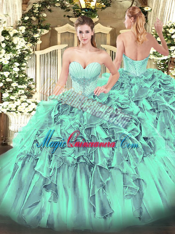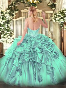 Elegant Sweetheart Sleeveless Lace Up Sweet 16 Quinceanera Dress Turquoise Organza