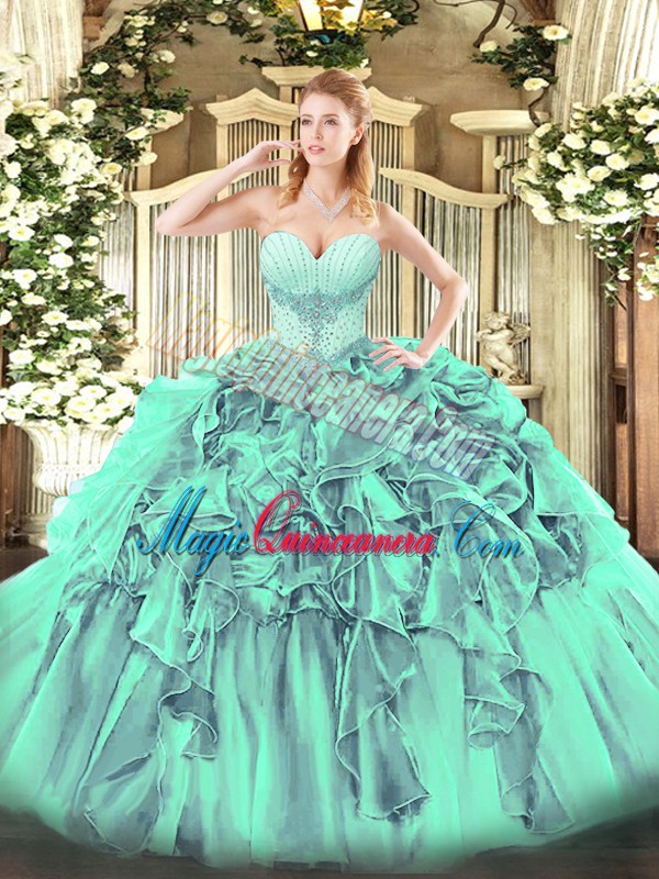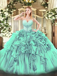 , Elegant Sweetheart Sleeveless Lace Up Sweet 16 Quinceanera Dress Turquoise Organza