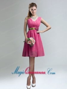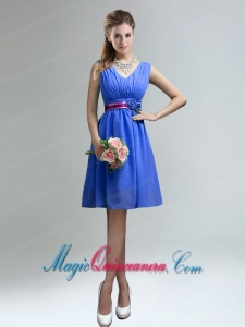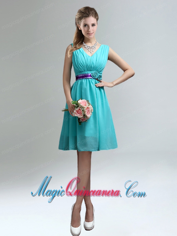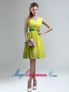 v neck dama quinceanera dresses, Elegant V-neck Ruched Dama Dress with Belt for Sale