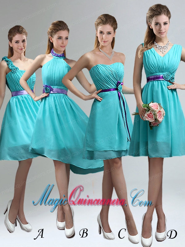 turquoise chiffon dama dresses with hand made flower,