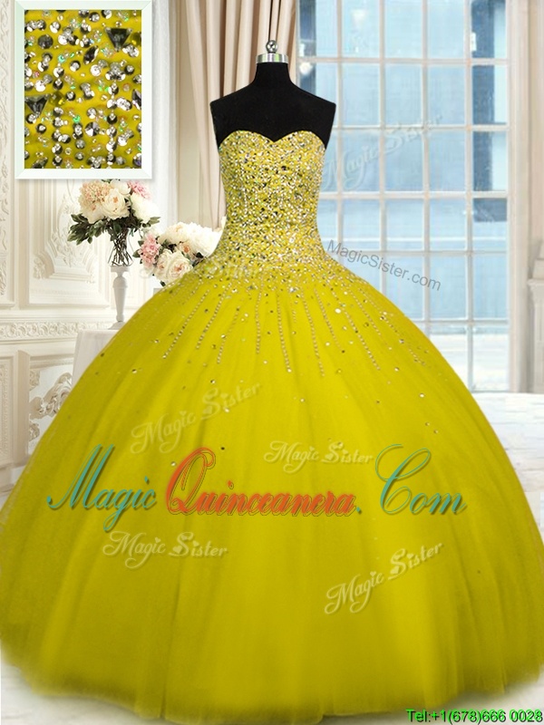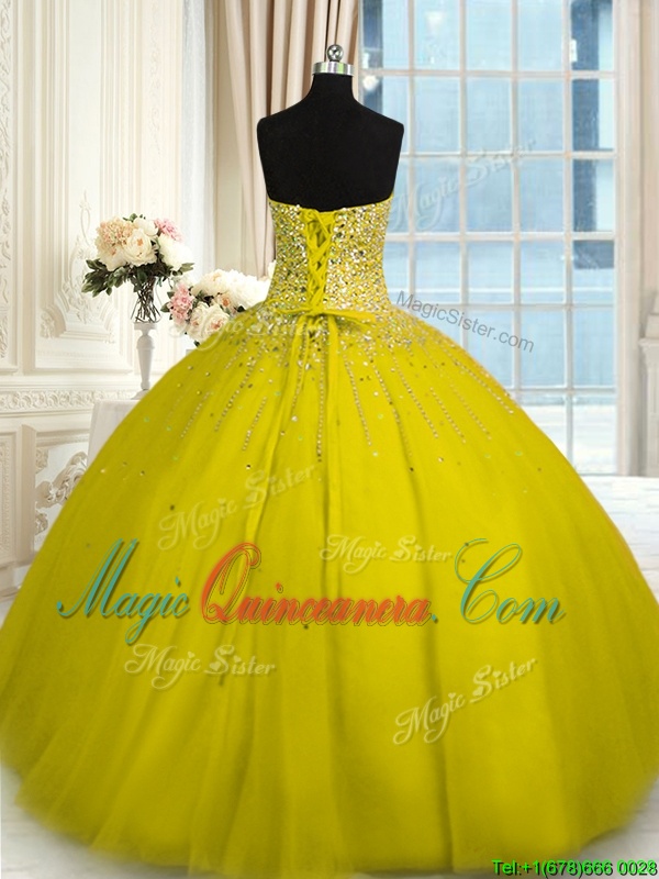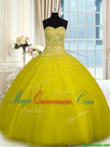 Elegant Yellow Quince Ball Gowns Military Ball and Sweet 16 and Quinceanera and For with Beading Sweetheart Sleeveless Lace Up