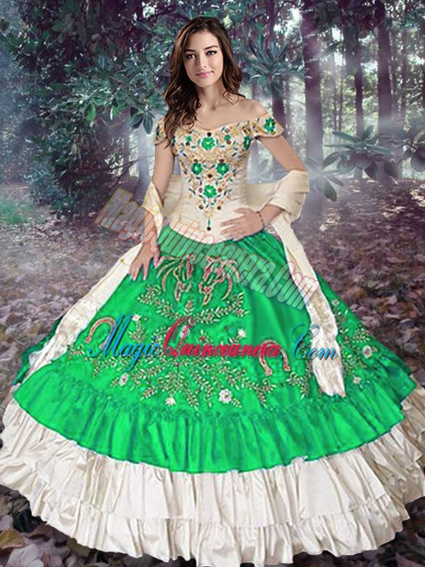 Embroidery and Ruffled Layers Quinceanera Dresses Green Lace Up Sleeveless Floor Length