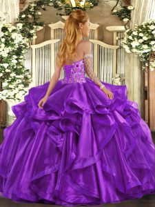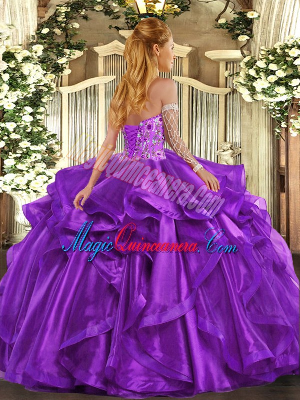 Embroidery and Ruffles 15 Quinceanera Dress Blue Lace Up Sleeveless Floor Length
