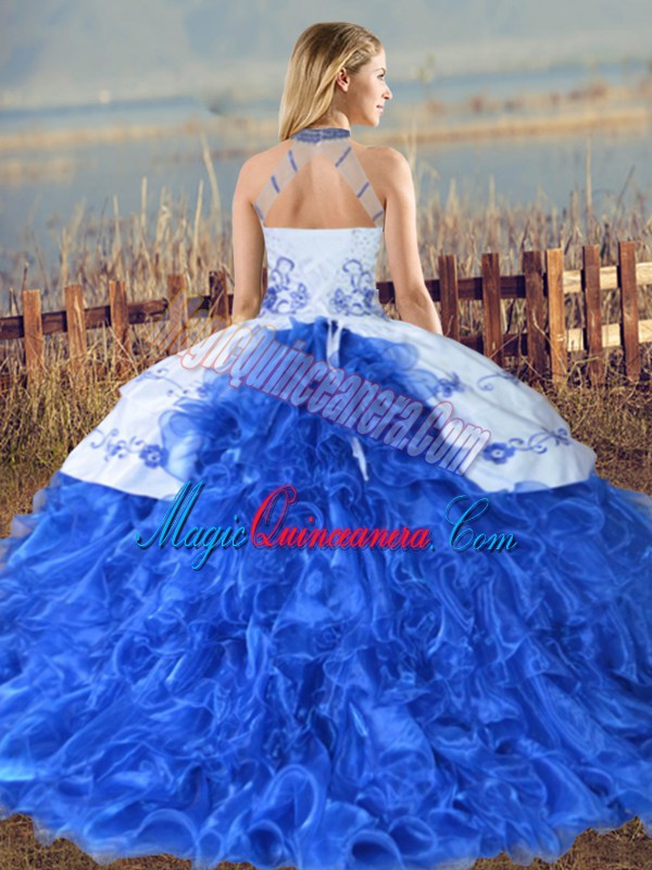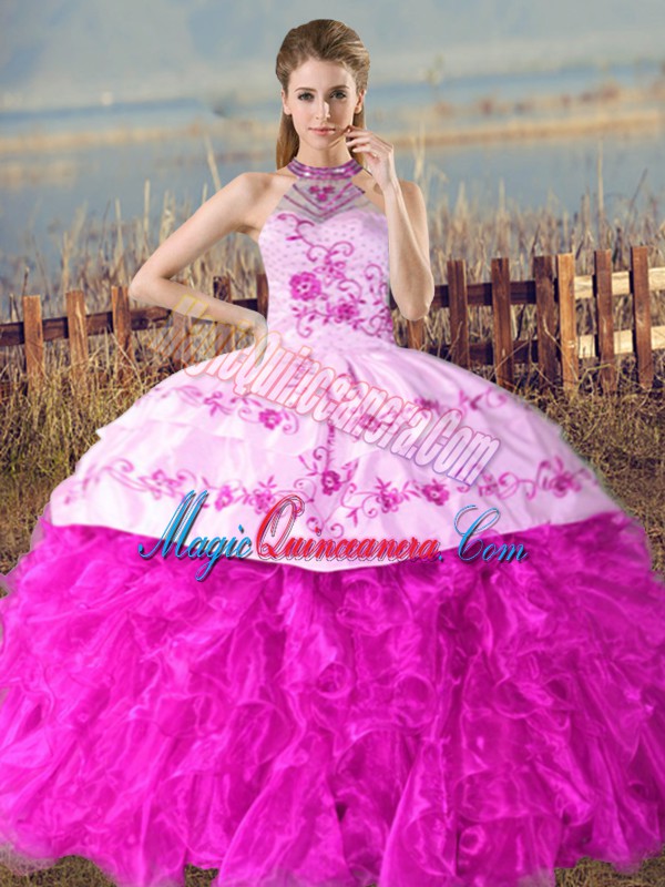 Embroidery and Ruffles Vestidos de Quinceanera Fuchsia Lace Up Sleeveless Court Train
