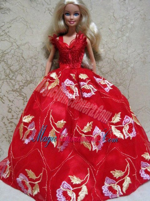 Embroidery Red Ball Gown Barbie Doll Dress
