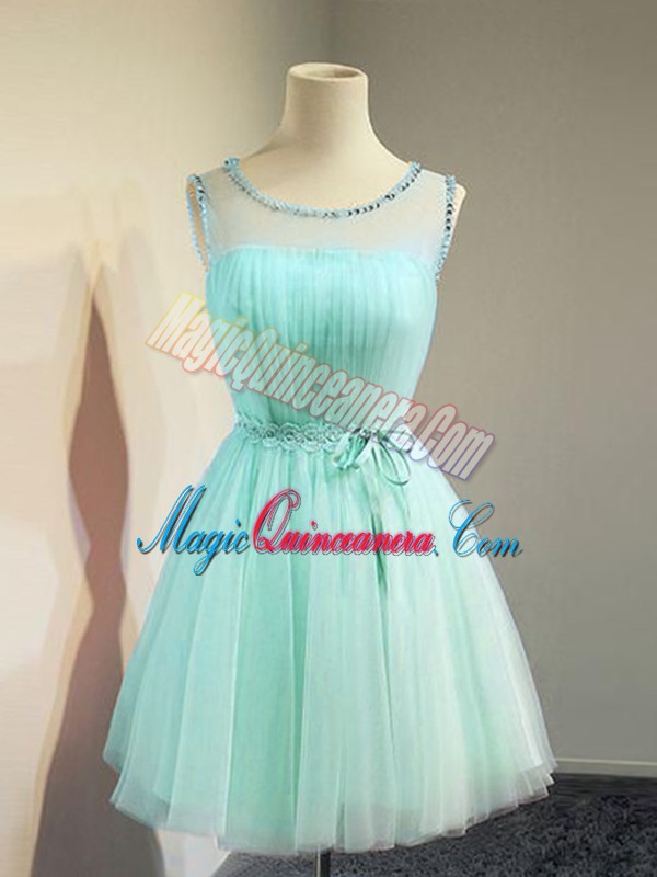Empire Dama Dress Apple Green Scoop Tulle Sleeveless Knee Length Lace Up