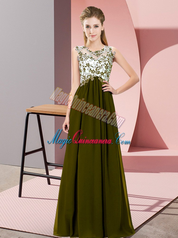 Empire Dama Dress for Quinceanera Olive Green Scoop Chiffon Sleeveless Floor Length Zipper