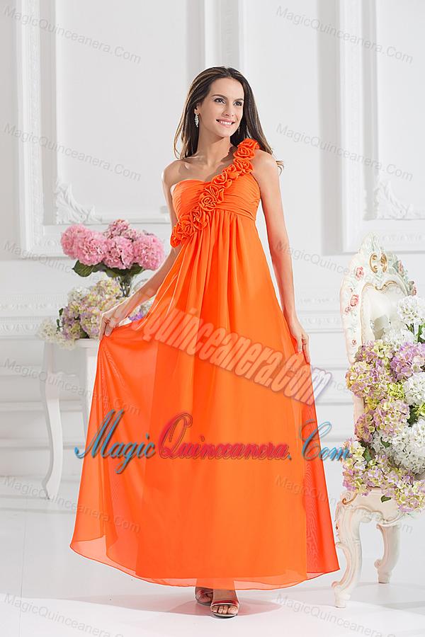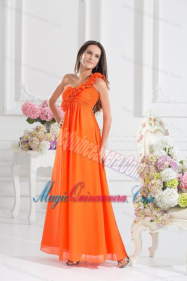 snazzy formal dresses for dama in louisiana, Empire Ruching Hand Make Flowers Orange Red Dresses for Dama