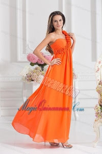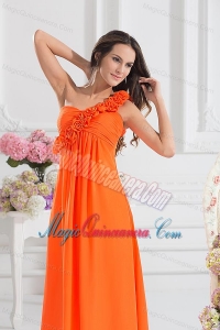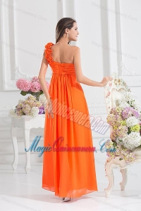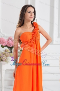 Empire Ruching Hand Make Flowers Orange Red Dresses for Dama