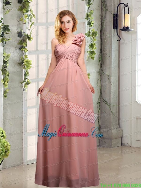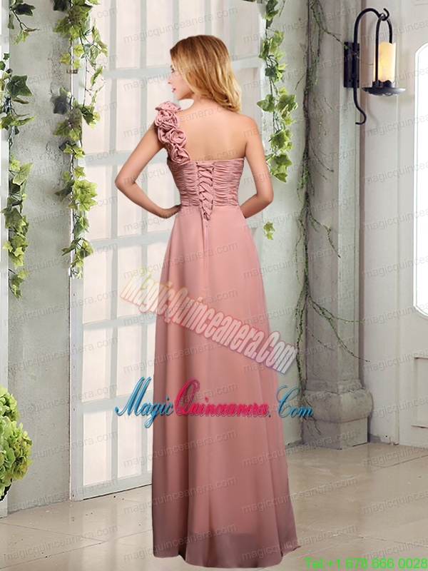 Empire Ruching One Shoulder Mother Dress for Quinceanera with Hand Made Flowers