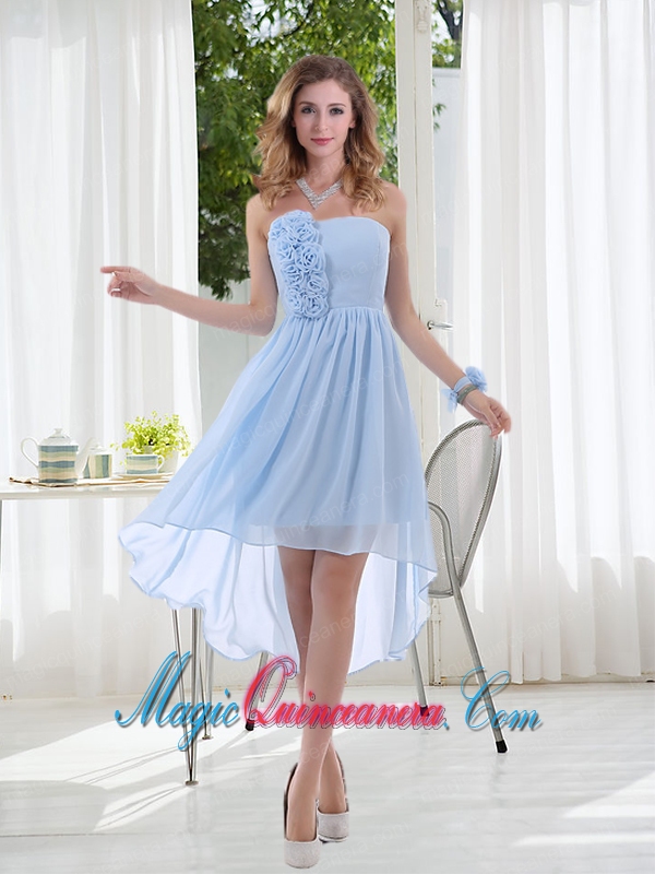 Empire Strapless Hand Made Flowers Dama Dress with High Low