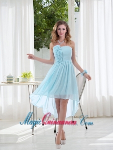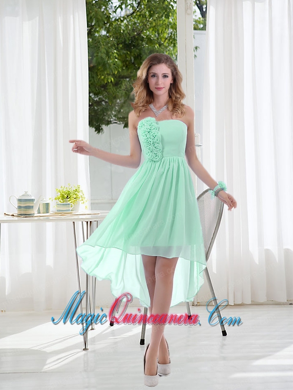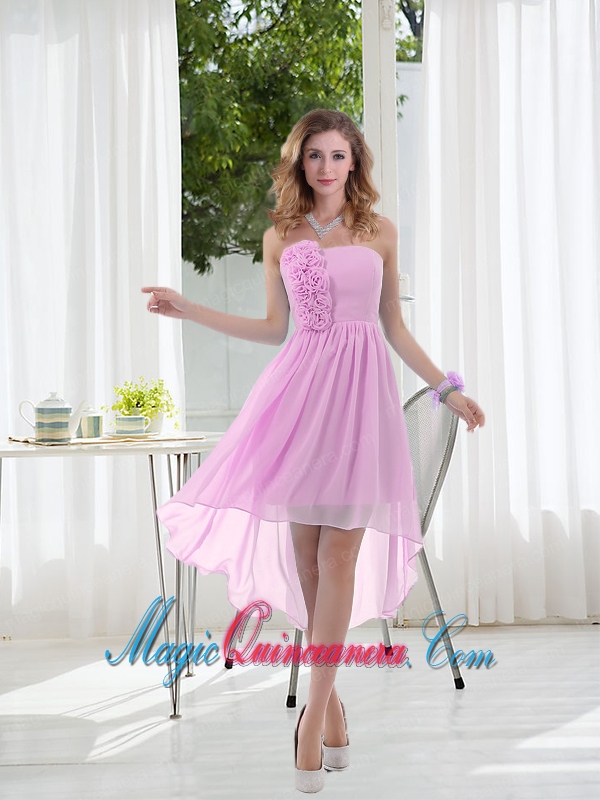 perfect strapless quinceanera dama dresses, Empire Strapless Hand Made Flowers Dama Dress with High Low