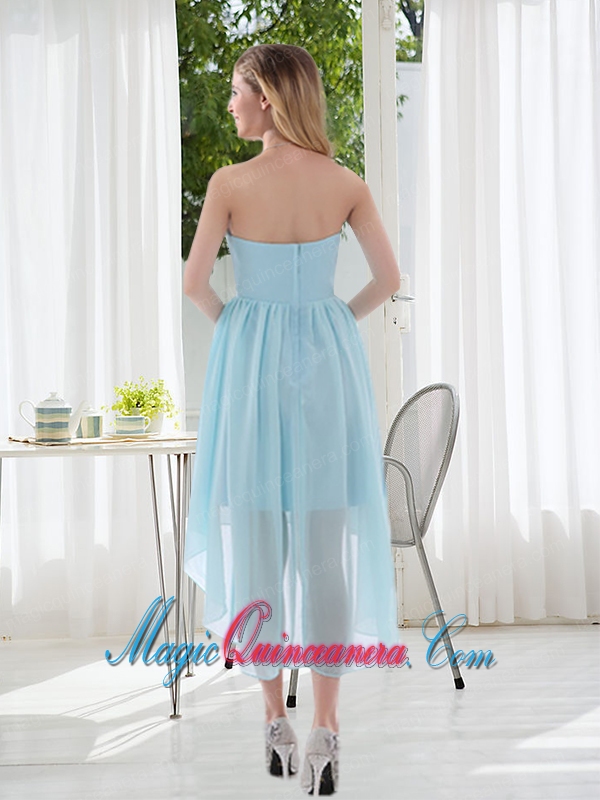 nice light blue chiffon mini length dama dress,