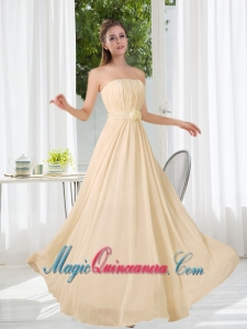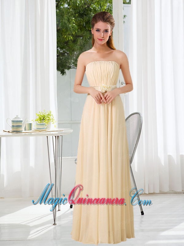 Empire Strapless Ruching and Belt Dama Dress with Floor Length