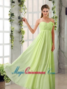 hot floor length sweetheart dresses for damas, Empire V Neck Ruching Chiffon Dama Dresses with Cap Sleeves