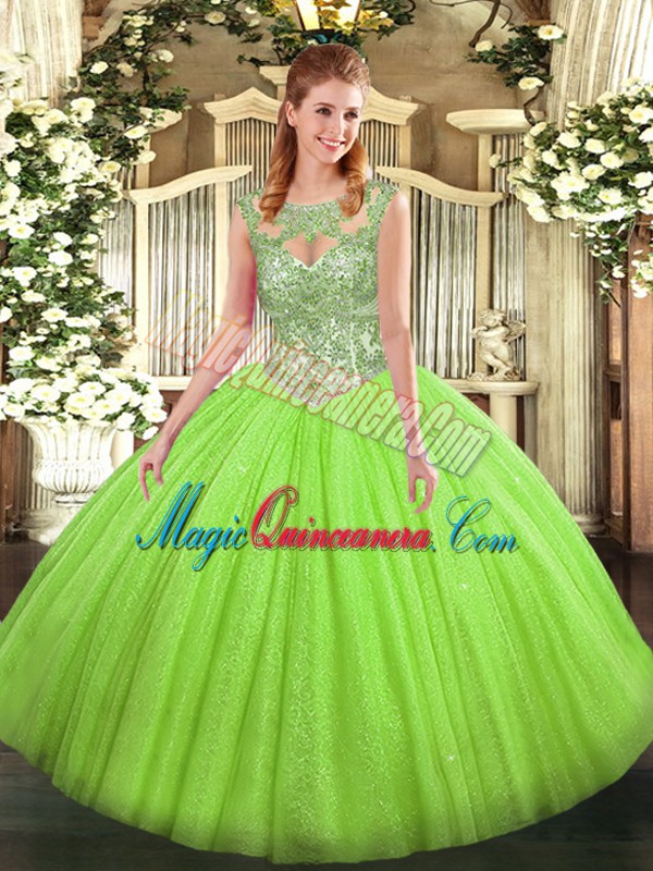 Enchanting Ball Gowns Ball Gown Prom Dress Scoop Tulle Sleeveless Floor Length Lace Up