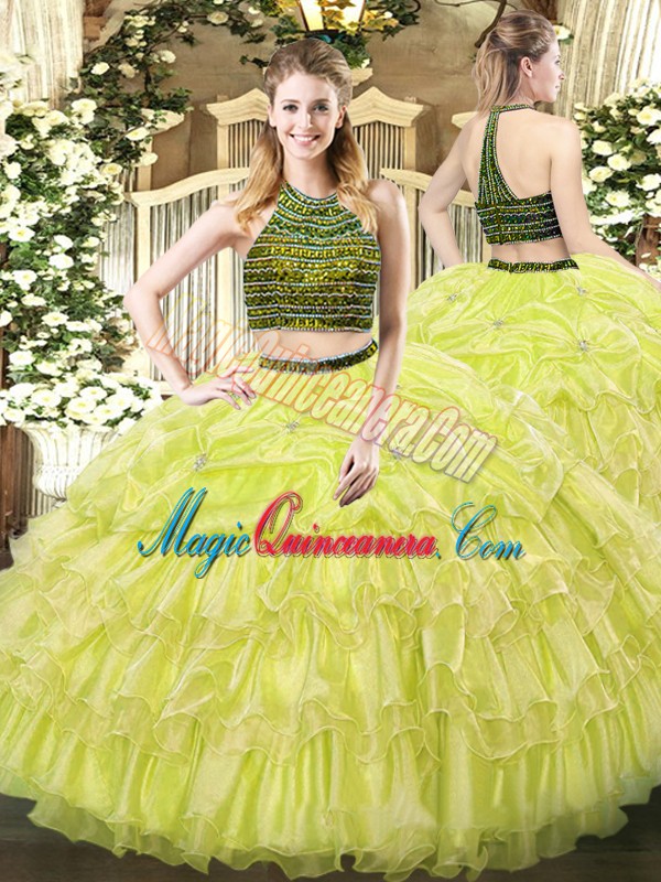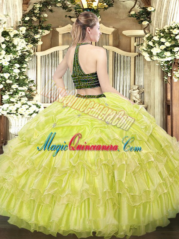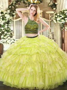 Enchanting Floor Length Ball Gowns Sleeveless Yellow Green Sweet 16 Dresses Zipper