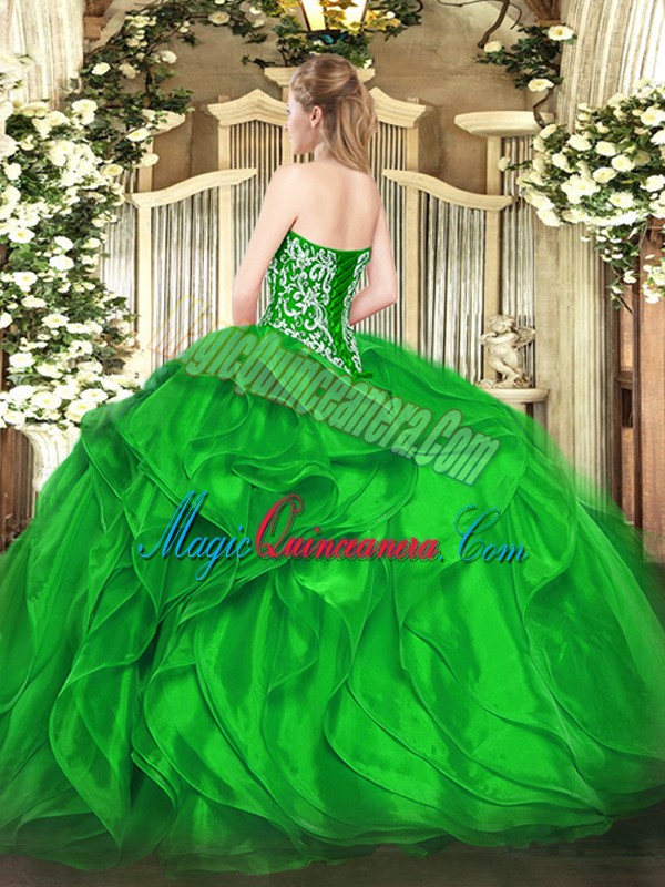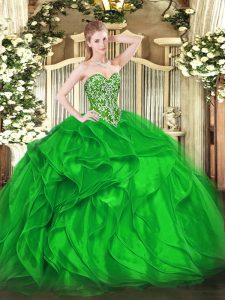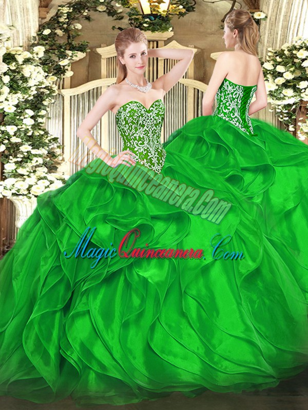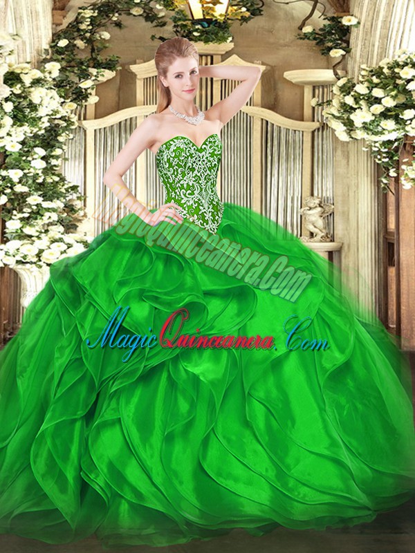 Enchanting Green Sleeveless Beading and Ruffles Floor Length Quinceanera Dresses