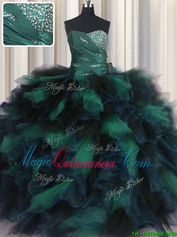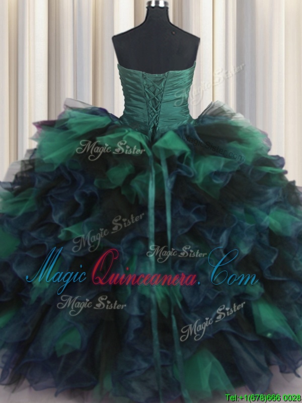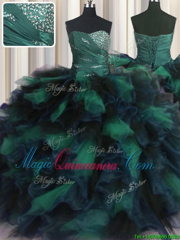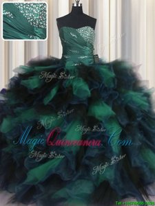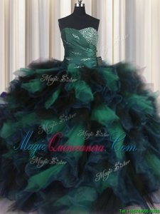 Enchanting Multi-color Sleeveless Organza and Tulle Lace Up Vestidos de Quinceanera for Military Ball and Sweet 16 and Quinceanera