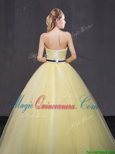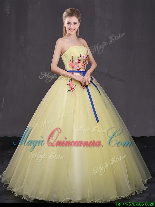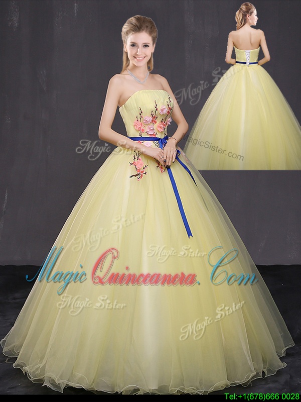 Enchanting Yellow Ball Gown Prom Dress Military Ball and Sweet 16 and Quinceanera and For with Appliques Strapless Sleeveless Lace Up