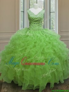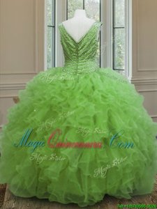 Enchanting Yellow Green Sleeveless Organza Zipper Sweet 16 Quinceanera Dress for Military Ball and Sweet 16 and Quinceanera - Magic Quinceanera