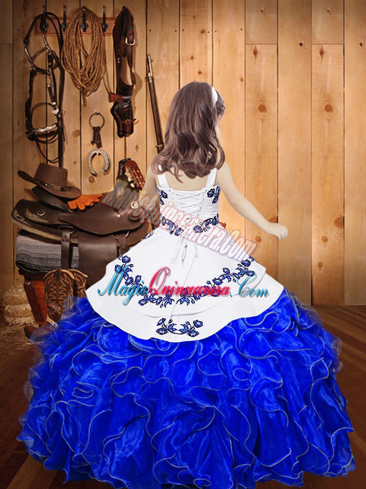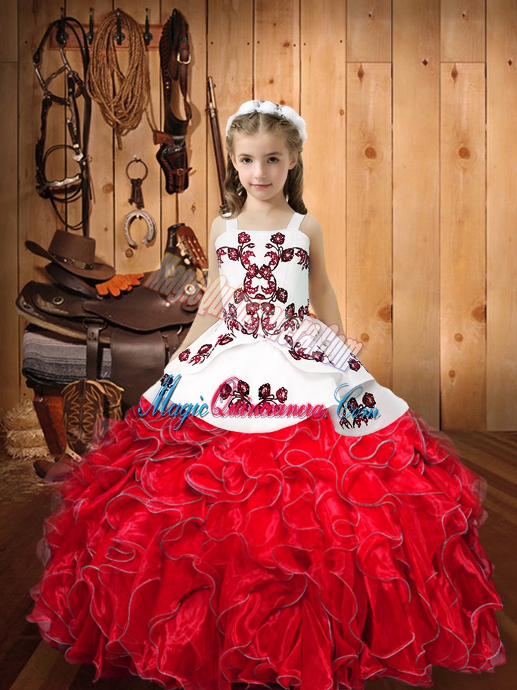Excellent Ball Gowns Kids Pageant Dress Red Straps Organza Sleeveless Floor Length Lace Up