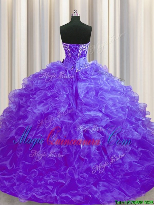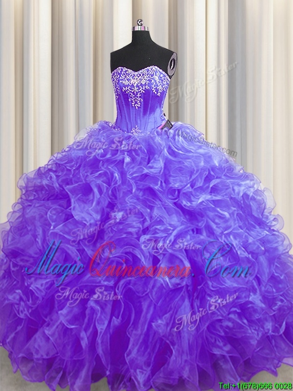 Excellent Brush Train Ball Gowns Sweet 16 Quinceanera Dress Lavender Sweetheart Organza Sleeveless Lace Up - Magic Quinceanera