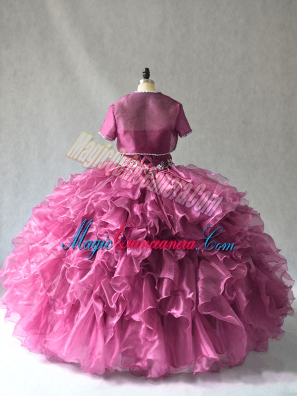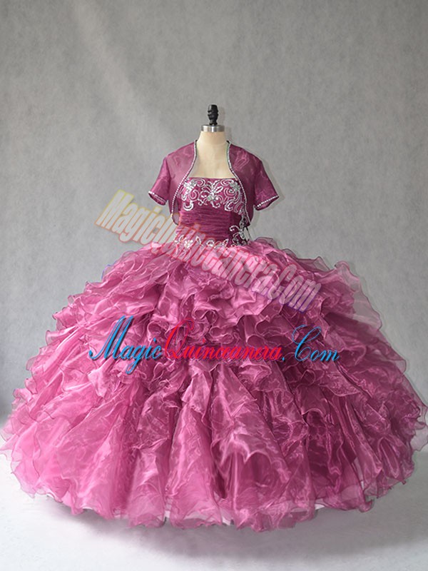 Excellent Burgundy Sleeveless Floor Length Beading and Ruffles Lace Up Vestidos de Quinceanera - Magic Quinceanera