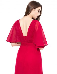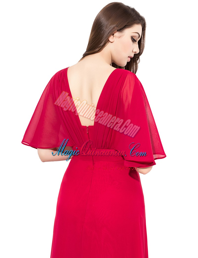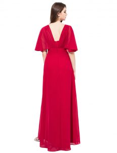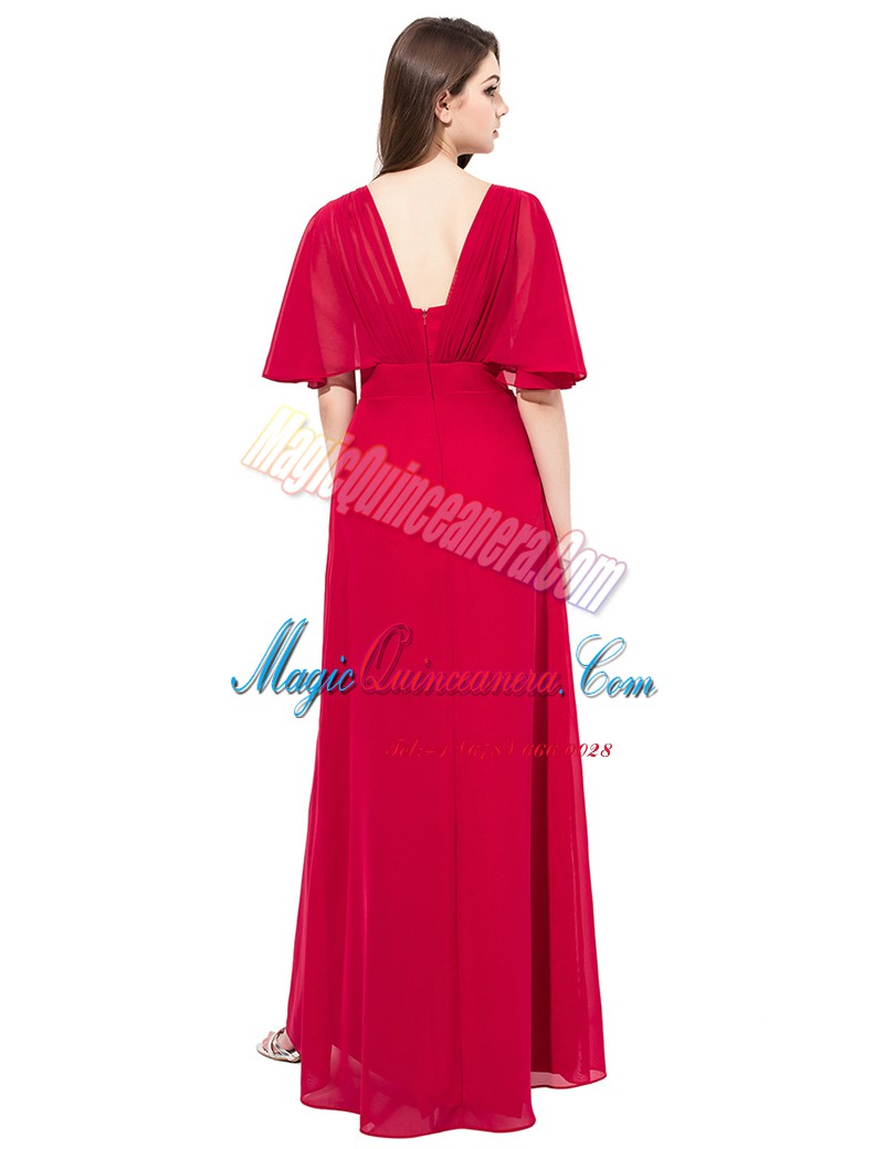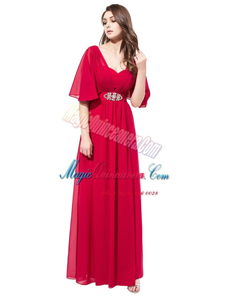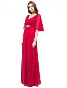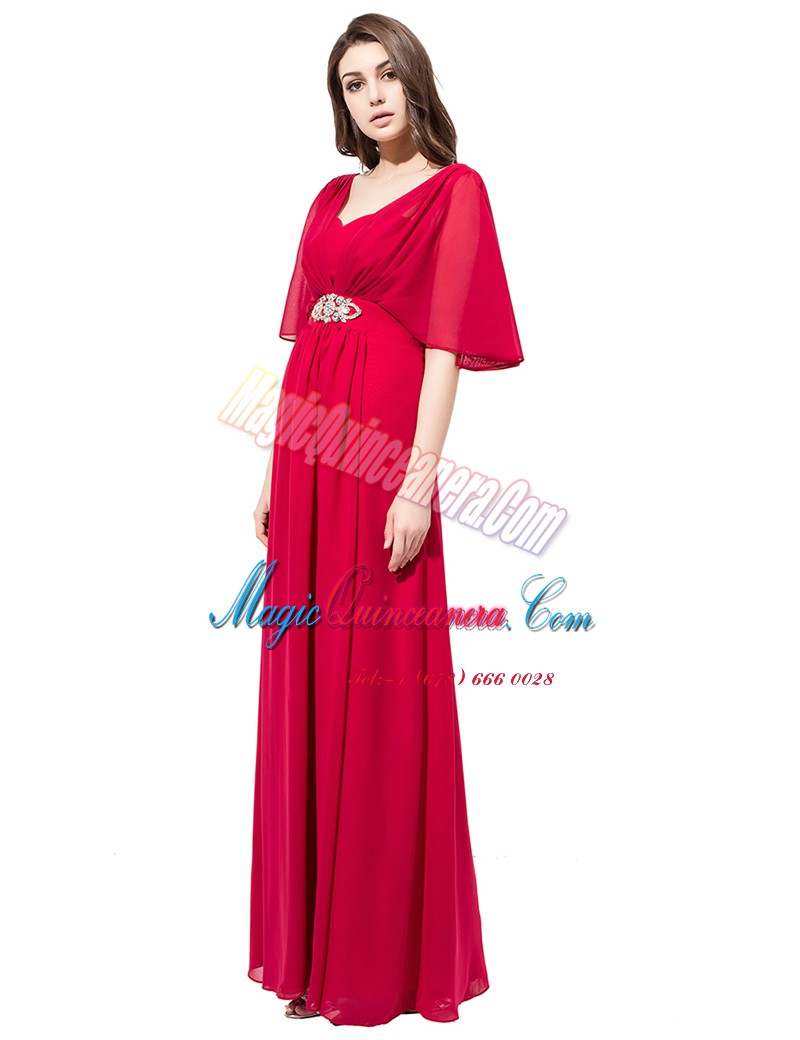 Excellent Coral Red Satin Zipper Mother Of The Bride Dress Half Sleeves Floor Length Beading