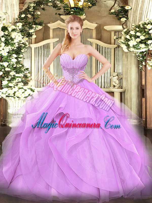 , Excellent Floor Length Ball Gowns Sleeveless Lavender Quince Ball Gowns Lace Up