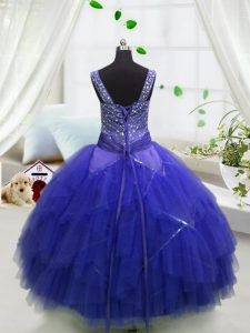 Excellent Floor Length Ball Gowns Sleeveless Royal Blue Little Girl Pageant Gowns Lace Up