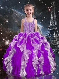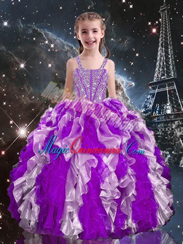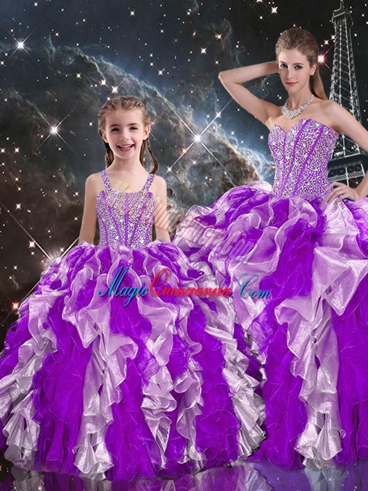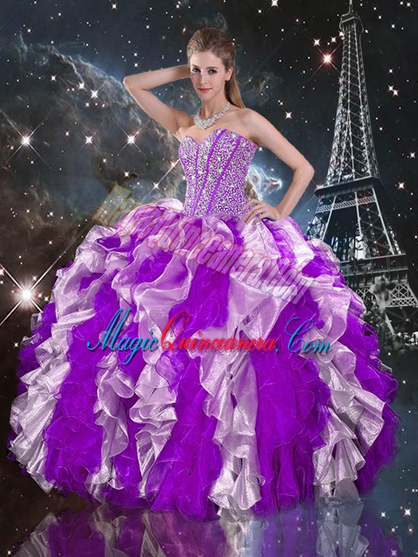 Excellent Multi-color Organza Lace Up Quinceanera Dress Sleeveless Floor Length Beading and Ruffles