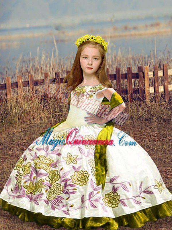 Excellent Off The Shoulder Sleeveless Lace Up Child Pageant Dress White Satin