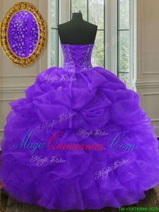 Excellent Pick Ups Purple Sleeveless Organza Lace Up Quinceanera Gown for Military Ball and Sweet 16 and Quinceanera