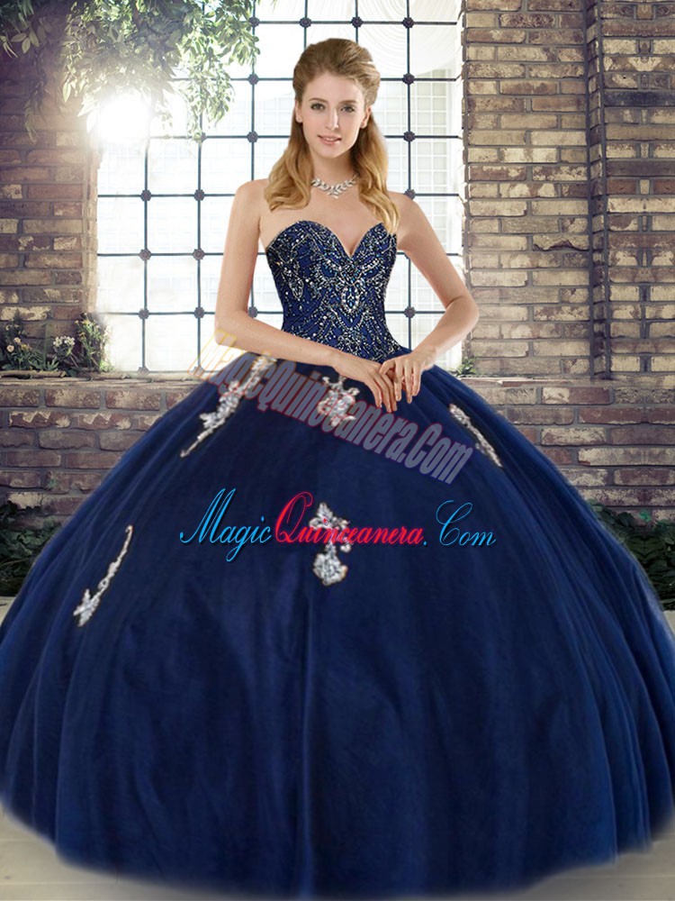 Excellent Sleeveless Lace Up Floor Length Beading and Appliques Quinceanera Gowns