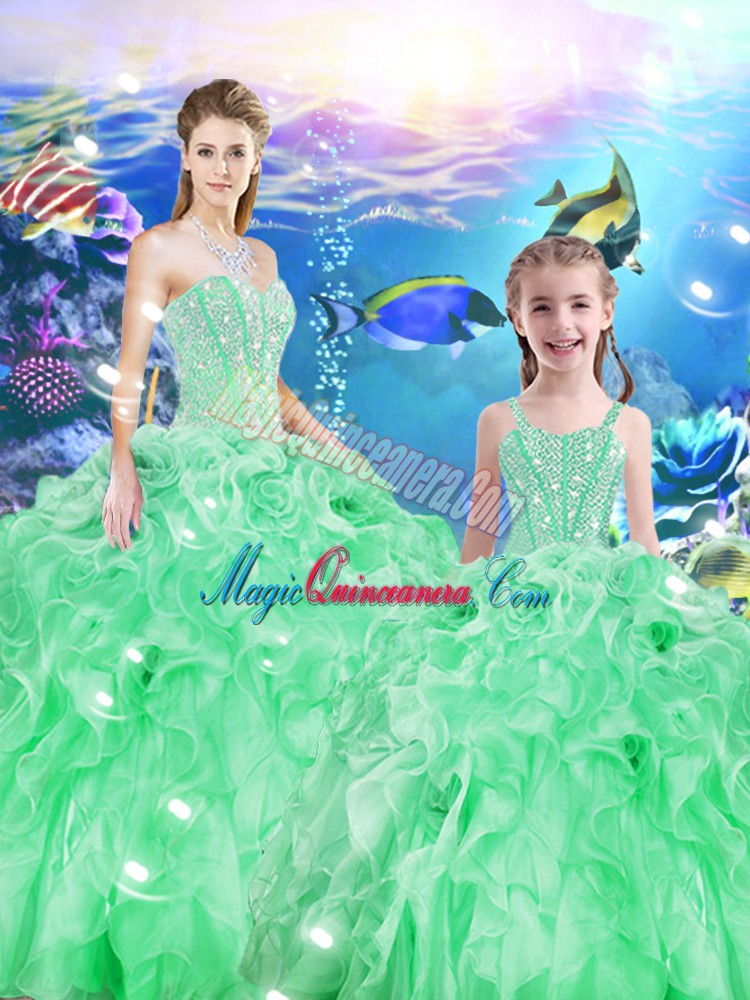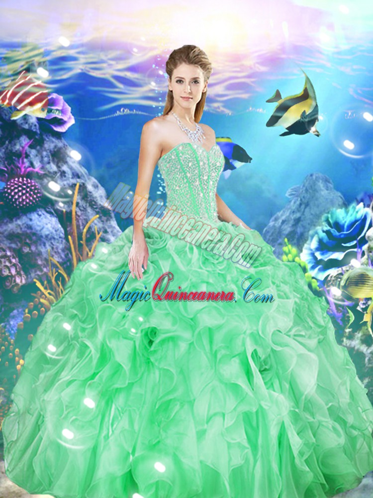 Excellent Sweetheart Sleeveless Sweet 16 Dress Floor Length Beading and Ruffles Apple Green Organza