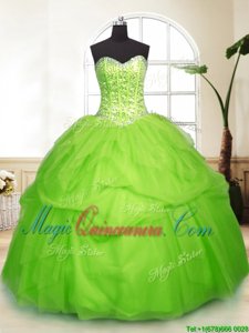Admirable Tulle Sweetheart Sleeveless Lace Up Sequins and Pick Ups Quinceanera Dresses in Green