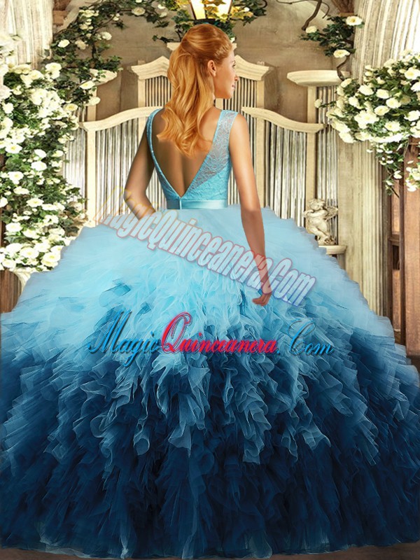 Exceptional Sleeveless Floor Length Ruffles Backless Vestidos de Quinceanera with Multi-color