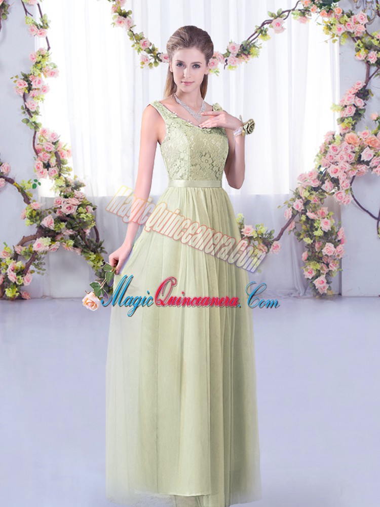 Exceptional Sleeveless Lace and Belt Side Zipper Dama Dress for Quinceanera