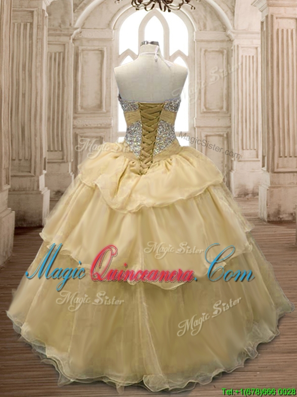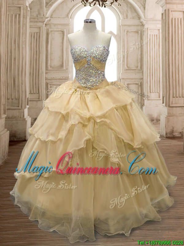 Exquisite Beaded and Ruffled Organza Sweet 16 Dress in Champagne