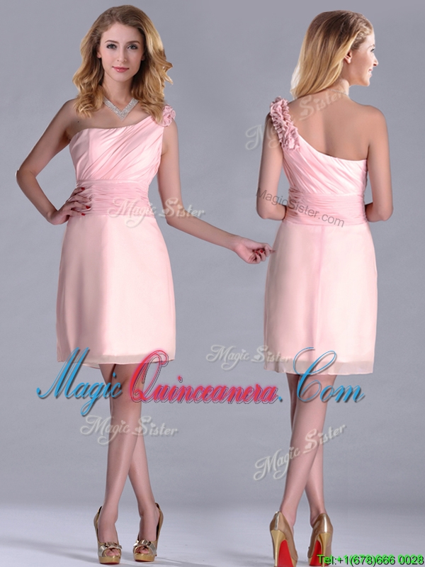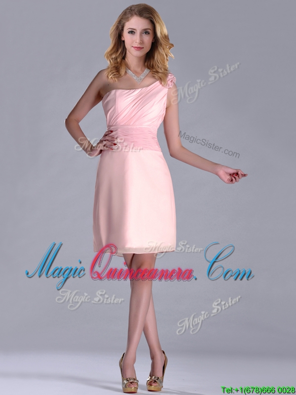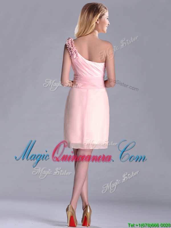 Exquisite One Shoulder Side Zipper Dama Dress in Baby Pink