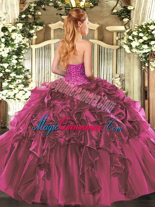 Exquisite Purple Sleeveless Floor Length Beading and Ruffles Lace Up Sweet 16 Dress