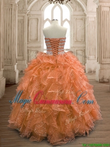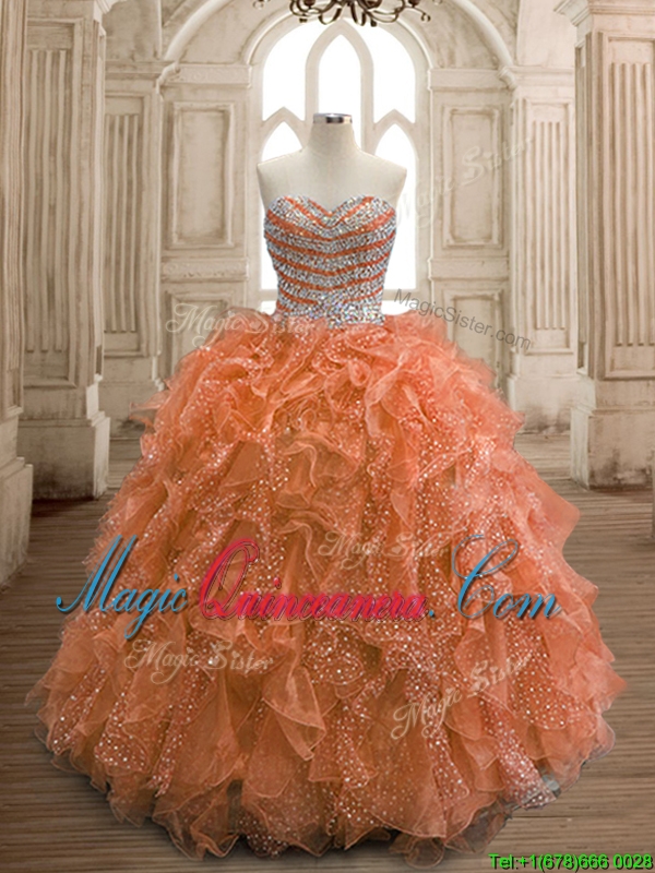 , Exquisite Rust Red Organza Quinceanera Dress with Beading and Ruffles